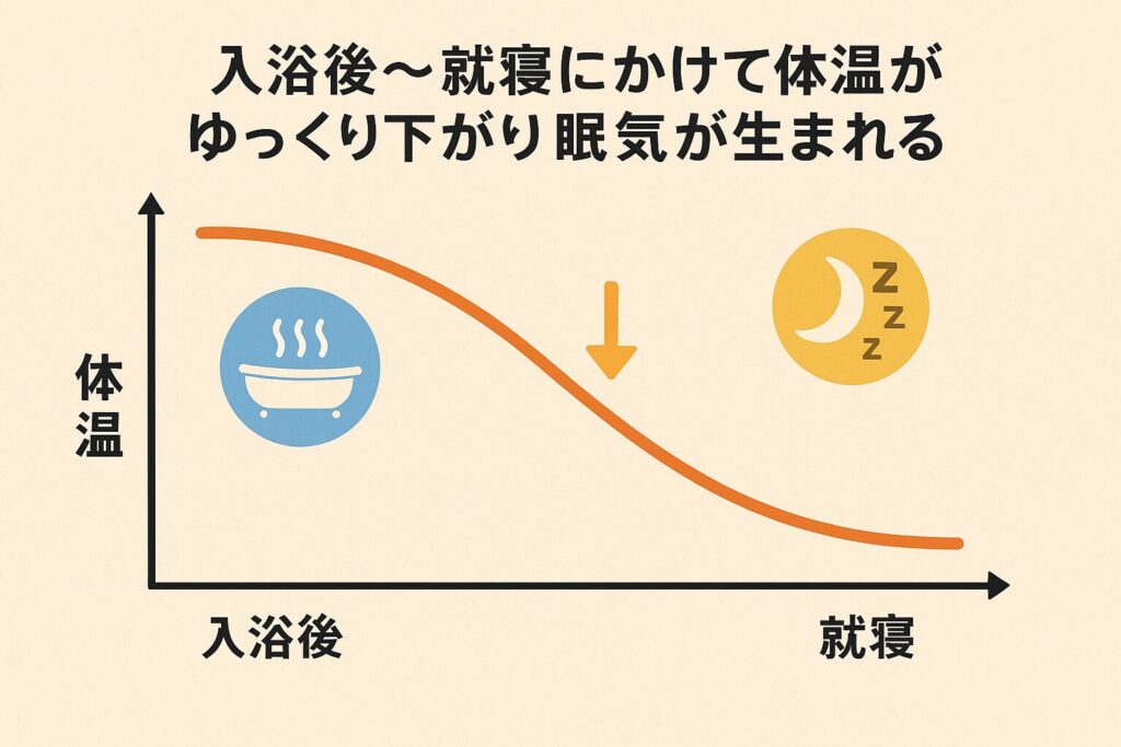体温が自然に下がることで、脳が「寝る時間」と認識しやすくなります。