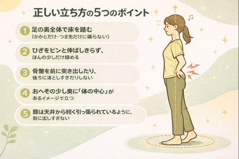 もし思い当たるクセがあれば、「すべて一気に直す」のではなく、「今日は片足重心だけ意識する」など、1つずつ改善していくのがおすすめです。